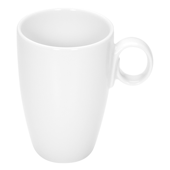 Elegant mugg från Bauschers serie Coffeelings som passar utmärkt för dagens alla kaffestunder. Muggen är tillverkad i riktigt slitstarkt porslin och är i en hög modell med ett litet öra. Designen är simpel men ger ändå ett elegant och stilrent intryck som passar till alla sorters serveringar och miljöer. Helt enkelt en utmärkt kopp för restauranger, caféer, bagerier och hotellverksamheter!