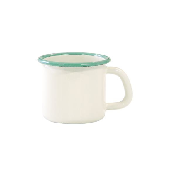 Retromugg från Kockums i klassisk cremefärg med turkos rand – en tidlös design som passar både varma och kalla drycker. Tillverkad med dubbla lager högkvalitativ emalj som effektivt står emot fläckar och är enkel att rengöra.