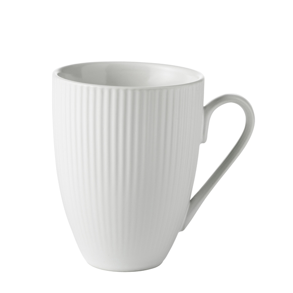 En vit mugg med räfflad dekor från Aidas serie Groovy. Muggen är tillverkad av högkvalitativt stengods och har en tidlös design som passar utmärkt in i alla miljöer. Perfekt för servering av kaffe, te och andra varma drycker på restauranger, caféer och hotell.