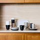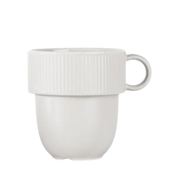 En mugg ur serien Inka från Sagaform med mjukt rundad form och seriens karakteristiska ränder. Den större modellen passar perfekt för te, kaffe eller andra varma drycker och den stapelbara designen gör den praktisk i både kök och servering. Muggen är tillverkad i benporslin och har praktiska avrinningskanaler på undersidan som förhindrar att vatten samlas efter maskindisk. Den vita färgen ger ett stilrent och tidlöst uttryck.
