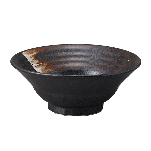 Japansk ramenskål från Kawai i serien Shuzeki Keirin. Skålen är tillverkad i Japan av porslin som tål höga temperaturer, vilket gör den idealisk för ramen. Den rustika, svarta designen gör skålen perfekt för servering av autentisk ramen och andra asiatiska rätter på restauranger.