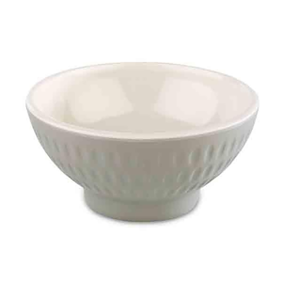 En snygg och neutral skål från APS kollektion Asia Plus. Skålen är i en mindre modell som passar till såser, nötter och andra mindre tilltugg. Den är gjord i melamin vilket är ett slittåligt material som passar utmärkt att använda på restauranger. Skålen är i en grå/vit färg med ett enkelt mönster längs utsidan.