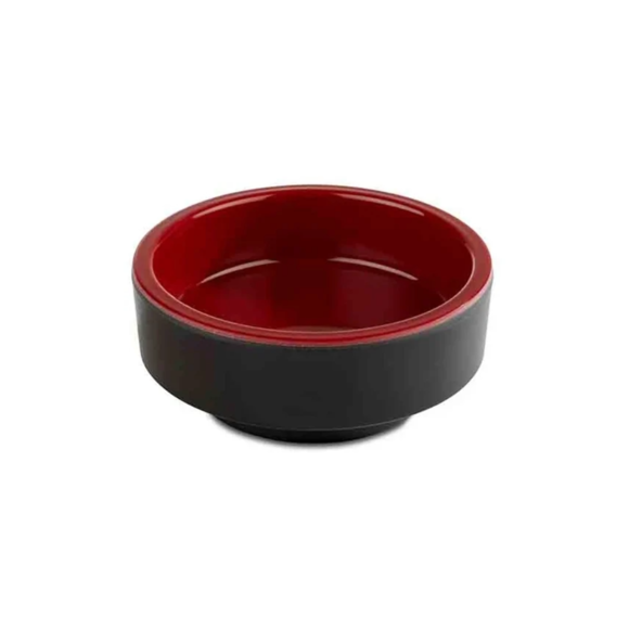En snygg och rustik skål från APS serie Asia Plus. Den enkla skålen har en tidlös design med utstickande färger. Utsidan är mattsvart och insidan har en glansig röd färg. Skålen är i en låg och rund modell med höga tjockare kanter som ger den ett mycket lyxigt intryck. Denna är i en mindre modell som passar utmärkt att servera olika såser i likt soya och annat. Skålen är gjord i melamin vilket är ett mycket slittåligt material som gör att den passar in på diverse restauranger.