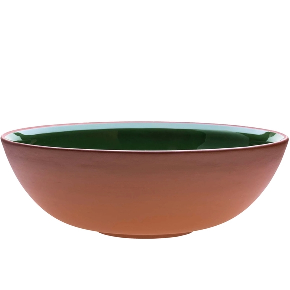 En unik skål från Vaidava Ceramics serie Earth, som kombinerar lettisk keramiktradition och minimalistisk nordisk design. Skålen är tillverkad av lettisk röd lera, har en mossgrön blyfri glasyr på insidan och en lätt polerad utsida. En perfekt skål för frukt eller grönsaker!