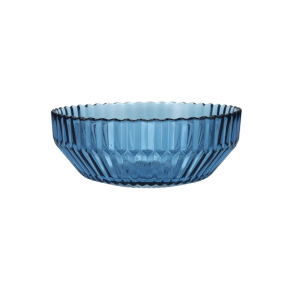Snygg glasskål från Fortessas serie Archie. Skålen är tillverkad av glas i en tilltalande blå kulör. Skålen sticker ut med dess härliga design och har en facetterad utsida som reflekterar ljus på ett vackert vis. Den fina glasskålen kan kombineras med skålar i andra färger för att göra dukningen både livlig och lekfull. Skålen är gjord i slittåligt soda-lime glas som gör den perfekt för restauranger och andra serveringsverksamheter. Servera en utsökt dessert, en fräsch skål yogurt eller valfritt snacks i denna eleganta skål!