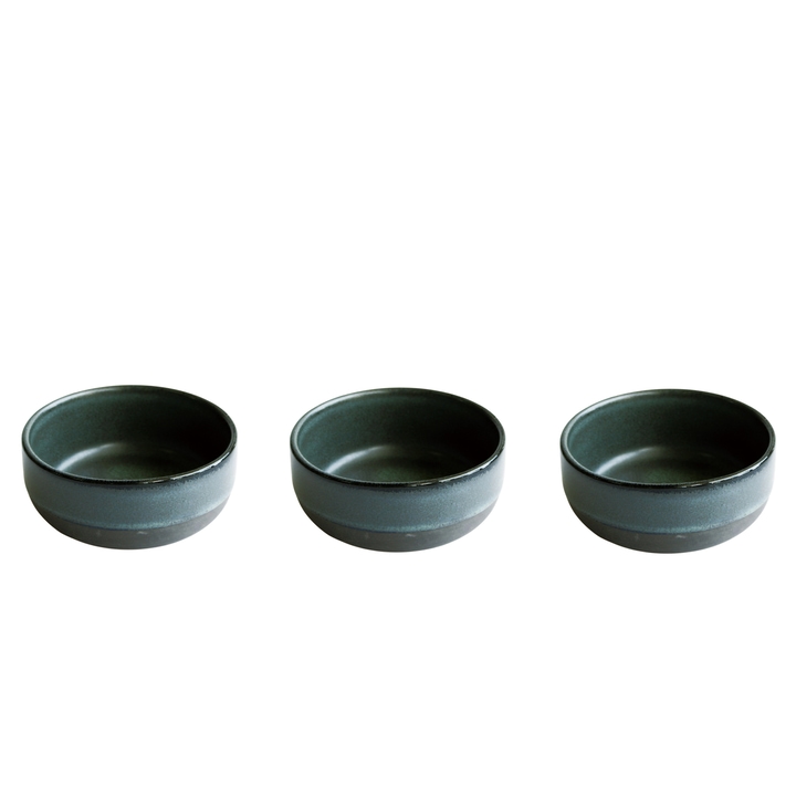 Handgjorda skålar i färgen Northern Green från Aidas serie RAW. Skålarna är tillverkade av dubbelbränt stengods för att säkerställa högsta kvalitet och lång hållbarhet, samtidigt som deras skandinaviska design ger en elegant framtoning. Perfekta för servering av allt från dipp och såser till nötter och snacks på restauranger, barer och hotell.