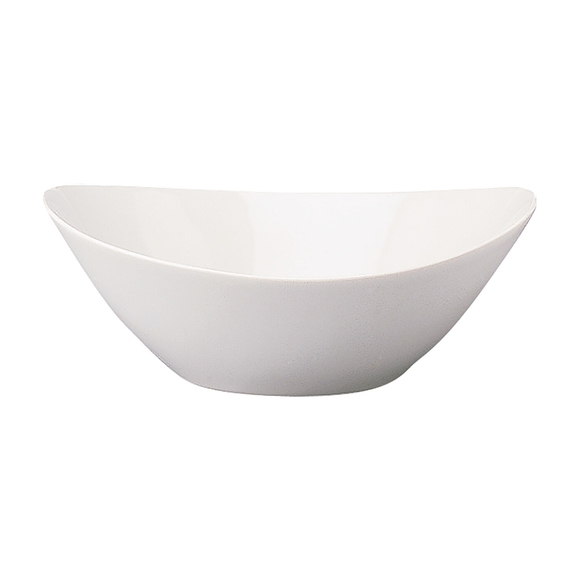 En modern skål från Schönwalds serie Unlimited. Skålen är oval och formad likt en banan med högre kanter. Den är vit och glansig i en mellanstor modell. Den stilrena behållaren passar utmärkt att använda vid servering av tillbehör till måltider eller för större snacks.