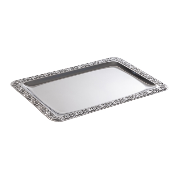 Högglansiga och snygga silverfärgade brickan i serien Schöner Essen från APS i rostfritt material. På denna bricka kan du på ett snyggt sätt presentera allt ifrån maträtter till drinkar. Brickan är lätt att rengöra och kommer hålla kvaliteten under lång tid.