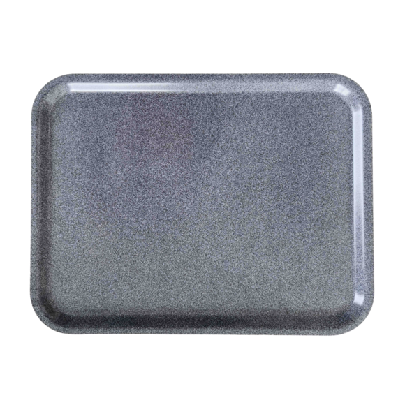 Rektangulär träbricka med granitgrå dekor. En stilren bricka med rundade, upphöjda kanter. Brickan är tillverkad i FSC märkt björkfaner vilket gör den både miljövänlig och slitstark. Den är väl anpassad för krävande miljöer såsom restaurang, café och storkök. Utmärkt som frukost- och lunchbricka. Underlättar både för gäster och personal.