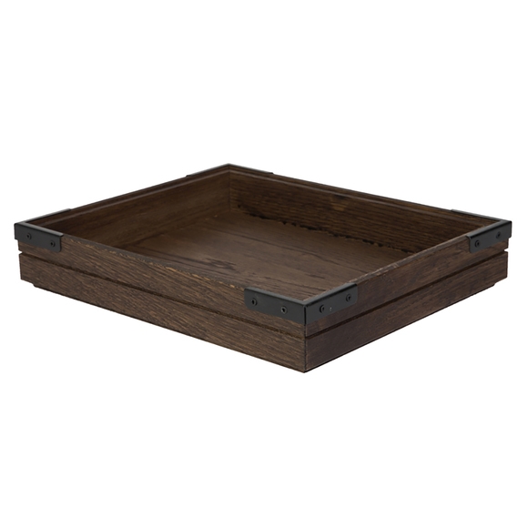 Denna träbricka i linoljad ek har en låg ram som ger en öppen och elegant presentation. Metallhörnen adderar både stabilitet och en modern detalj som lyfter uttrycket. Utformad i GN 1/2-format passar den perfekt för servering och display av rätter och tillbehör i professionella miljöer som restaurang, café och bufféservering.