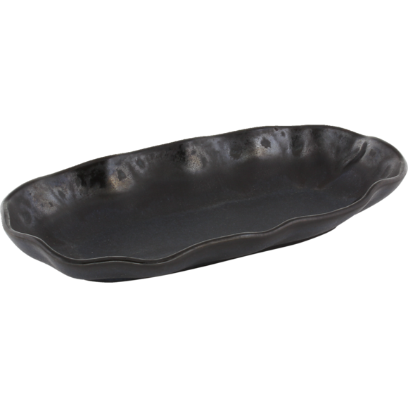 Porslinsserien Nami från Playground finns i flera utföranden med en vacker vågformad design och harmoniska färger. Detta ovala fat i färgen Ebony utgör ett stilfullt inslag till det dukade bordet.