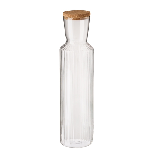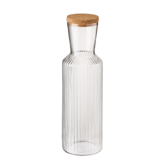 En vacker och tidlös karaff från APS kollektion Line. Behållaren är enkel i designen men sticker ut med sina linjer som går lodrätt längs med karaffen. Den är cylinderformad med en trumpetformad öppning. Till den stilrena karaffen tillkommer det ett lock i kork.