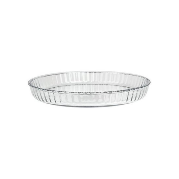 Rund pajform i glas som tål intensiv användning i restaurang- och storköksmiljö. Idealisk för tillagning och servering av både mat- och dessertpajer.