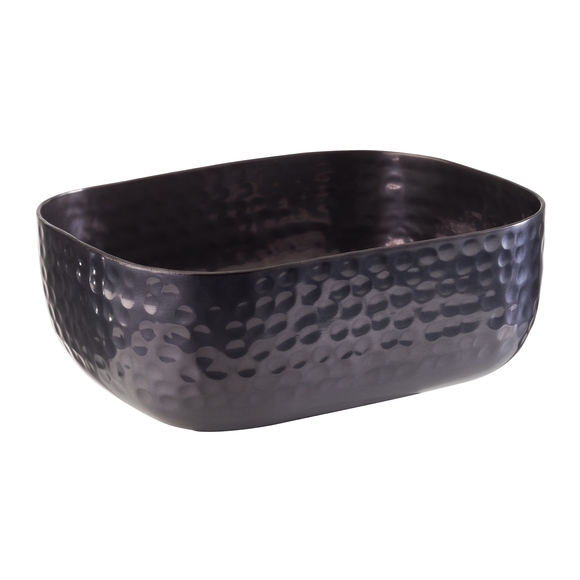 En svart, hamrad korg från APS med modern design, perfekt för att servera förrätter, snacks, sidorätter och tilltugg på ett stilfullt och unikt sätt.