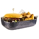 En svart, hamrad korg från APS med modern design, perfekt för att servera sallader och sidorätter på ett stilfullt och unikt sätt.