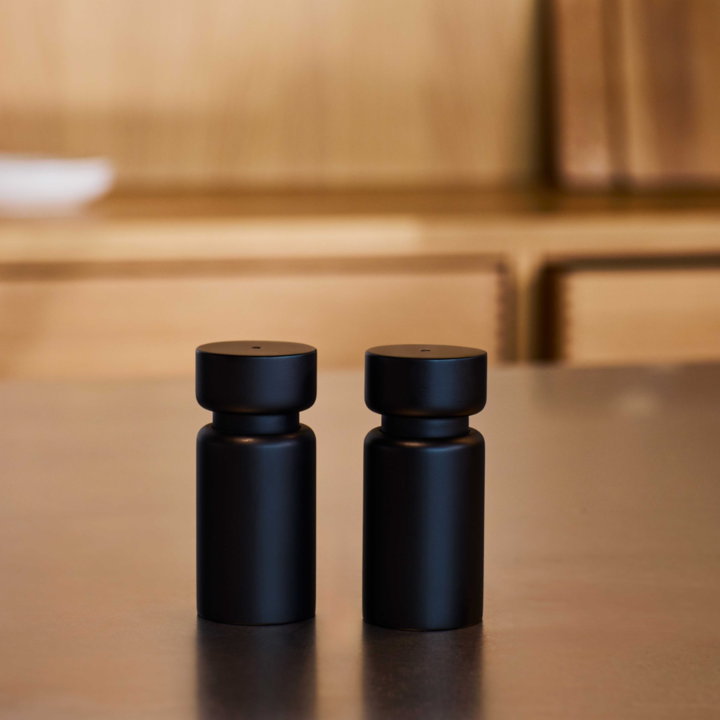 Ett salt- och pepparkvarnset från CrushGrind i modellen Helsinki, utvecklat för servering i restauranger, caféer och moderna köksmiljöer. Kvarnarna är tillverkade i FSC®-certifierat trä med svart finish och är utrustade med en keramisk CrushGrind®-mekanism som ger jämn malning och framhäver aromer från salt, peppar och torkade kryddor