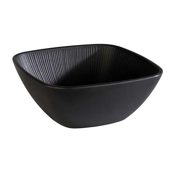 En skål med en tillfallande räfflad insida från APS i serien Nero. Skålen är tillverkad av melaminplast, vilket är ett lätt och populärt alternativ till tungt porslin. Skålens svarta färg skapar kontrast till maten på ett mycket snyggt sätt, perfekt för såväl sallader som desserter!