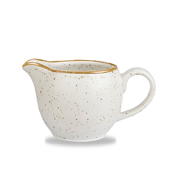 Mjölkkanna 11,4cl barley white från Churchill är en mindre vit mjölkkanna tillverkad i porslin. Mjölkkannan är spräcklig i färgen och har en elegant gyllenbrun kant. Kannan är perfekt till servering av mjölk vid sidan av kaffe eller te. Passar utmärkt för restauranger, caféer och cateringverksamheter.