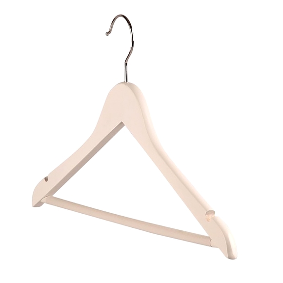 Vita galgar tillverkade av hållbart och slitstarkt trä. Galgarna är utrustade med skåror och en praktisk stång i mitten som underlättar upphängning av olika plagg utan att lämna märken eller skrynklor. Med sin enkla och utrymmessnåla design är de perfekta för garderober på hotell, restauranger, caféer och event.