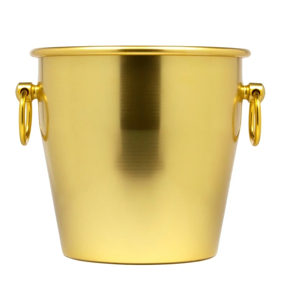 En elegant, guldpläterad vinkylare med dekorativa handtag. Fyll kylaren med is och placera den direkt på bordet eller på ett separat golvställ. Perfekt för att hålla vin och andra drycker väl kylda under hela serveringen på restauranger, barer och hotell.