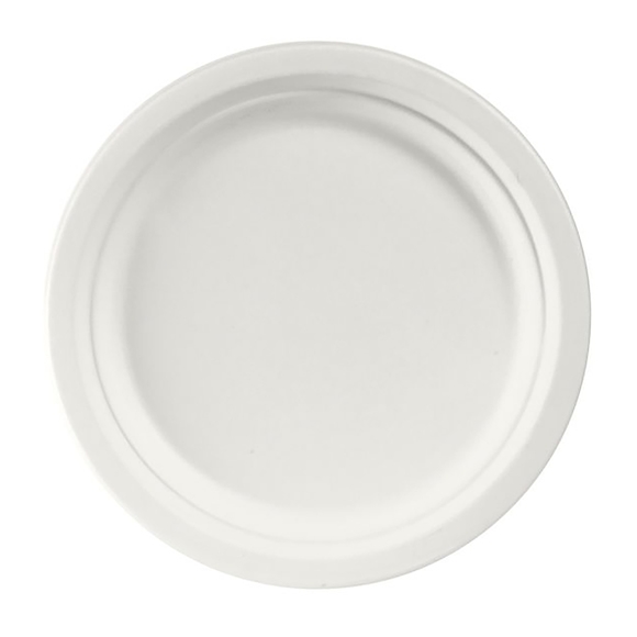 Hållbar engångstallrik från Biopak i en vit färg. Tallriken är gjord av bagasse, som är ett 100% förnybart och komposterbart material av sockerrörens fibrer. Den är mycket användbar vid stora evenemang eller till utomhusserveringar där gästerna enkelt kan kasta tallriken efter användning. Ett utmärkt alternativ för restauranger, food trucks eller cateringföretag.