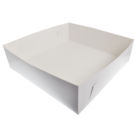 Tårtkartong botten vit 39x39x11cm 100st. Vit bottendel till tårtask för förpackning av tårtor och bakverk. Med tillhörande lock blir tårtasken komplett och paketeringen trygg.