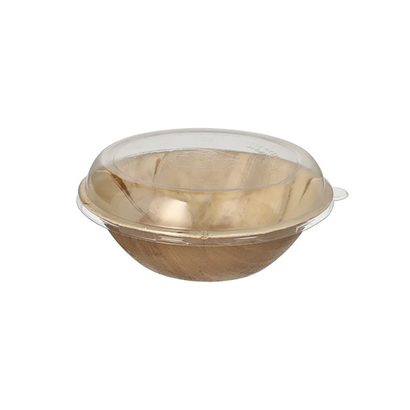 Stabil, hållbar och snygg takeaway servis. Skålen är brun, naturlig och gjord av palmblad, medan locket är tillverkat av återvunnet plats. Visa dina gäster att du tar miljömedvetna val genom att servera mat från restaurangen eller på tillställningar i denna. Ypperlig när dina gäster önskar ta med din mat hem. Enkel att förvara och stapla, passande för alla typer av restauranger/cafeér.