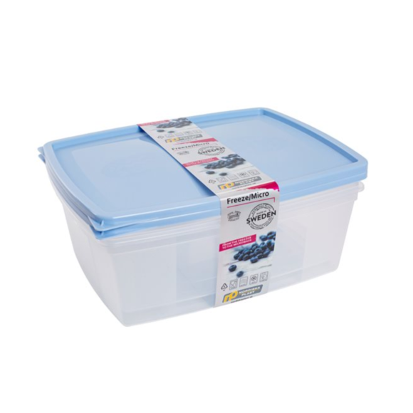 En plastburk från Nordiska Plast i serien Frys/Micro, utvecklad för smidig och säker matförvaring i restaurangkök, caféer och hushåll. Burkarna passar för förvaring i kyl och frys samt för uppvärmning i mikrovågsugn. Burkarna är tillverkade i transparent polypropenplast som gör det enkelt att se innehållet. Det mjuka locket är lätt att öppna och burkarna kan staplas på varandra i kyl och frys eller travas i varandra vid förvaring i skåp.