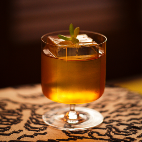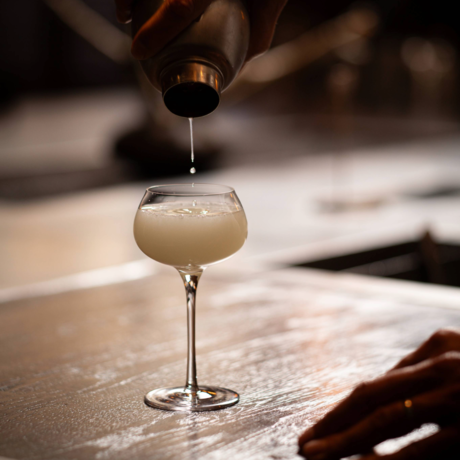 Ett cocktailglas med rund kupa och kort fot. Formen samlar aromerna och ger en elegant servering för klassiska spritbaserade cocktails.
